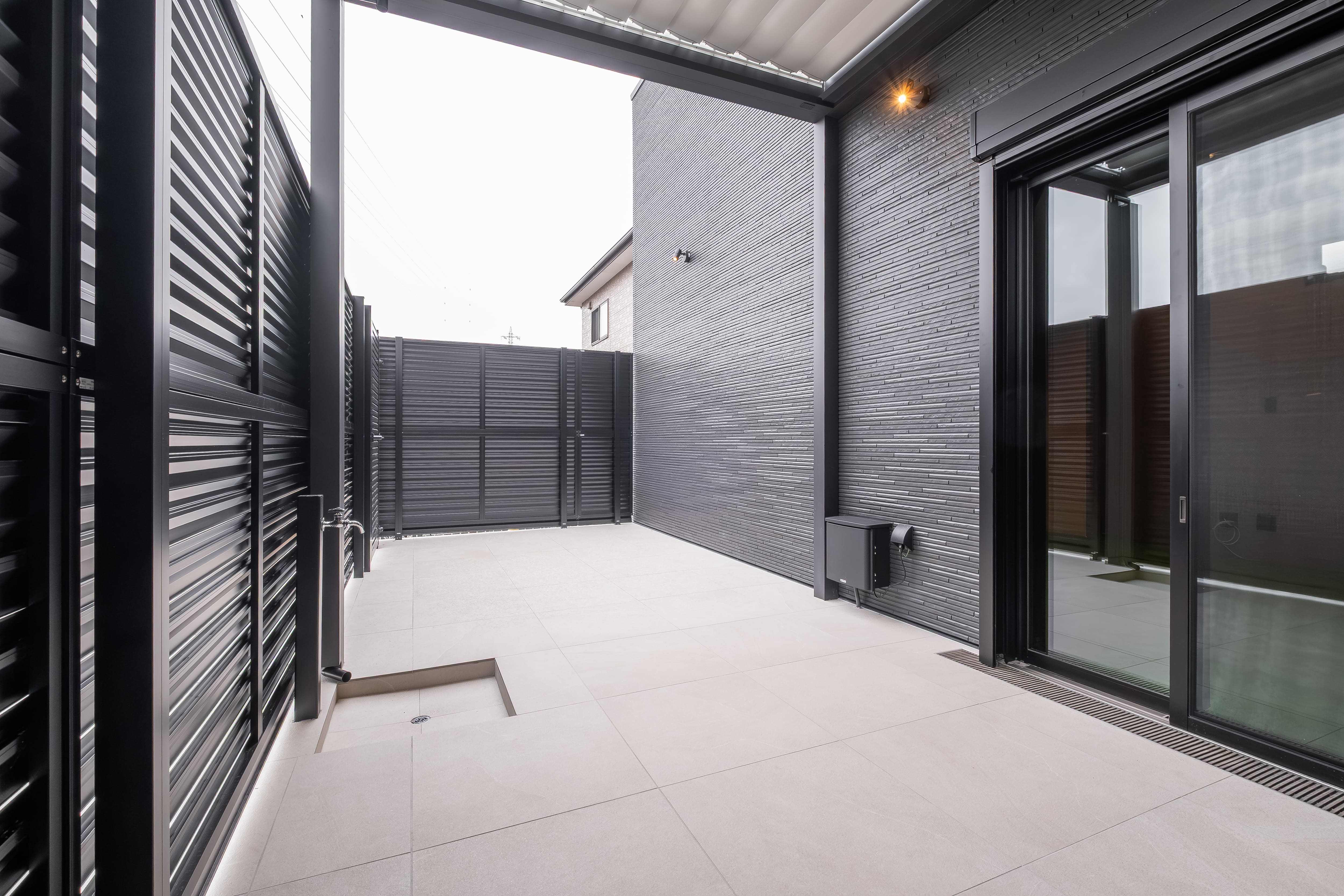 黒で統一した重厚感と、外からの視線を遮る設計