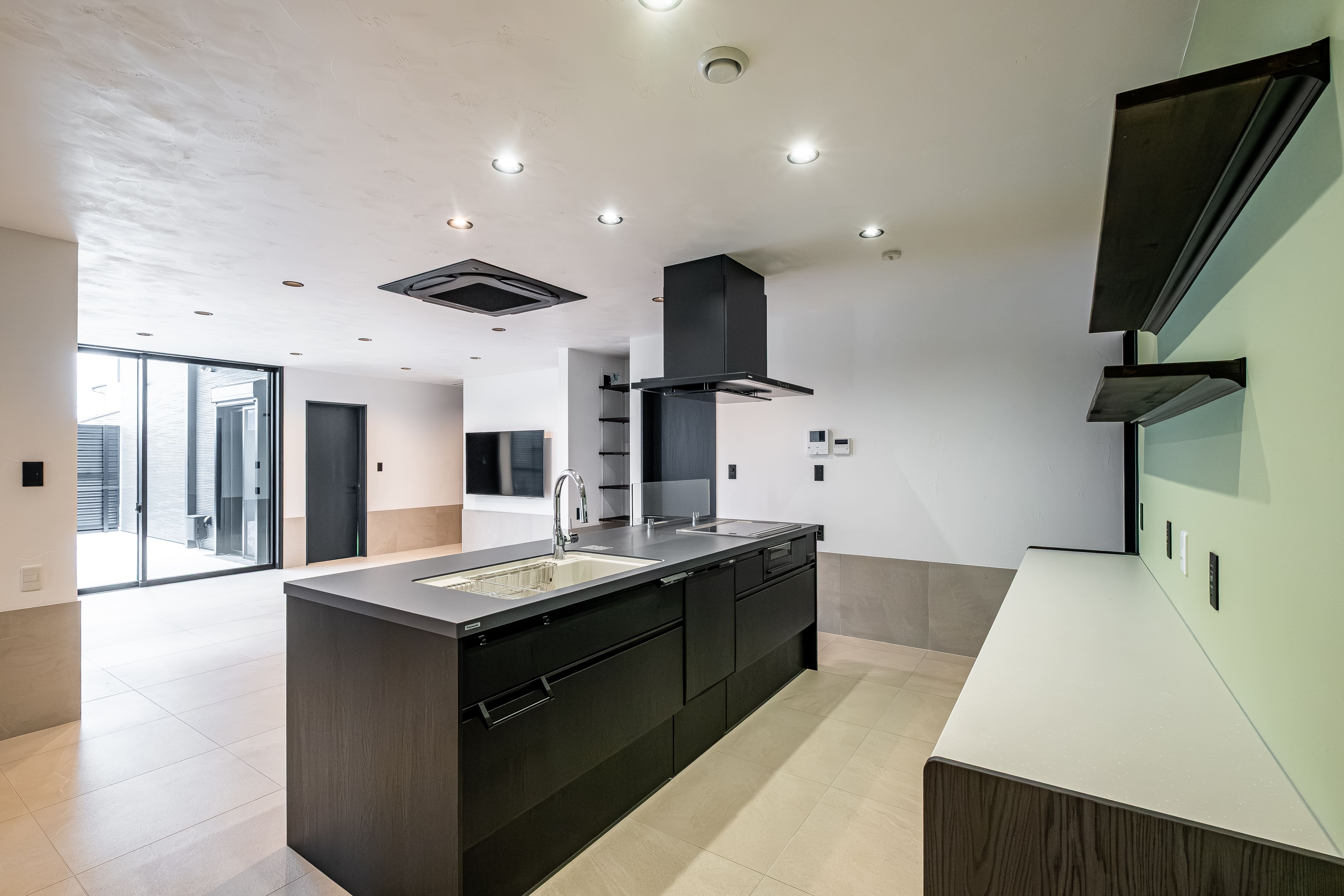 アイランドキッチンが中心の広がりある空間