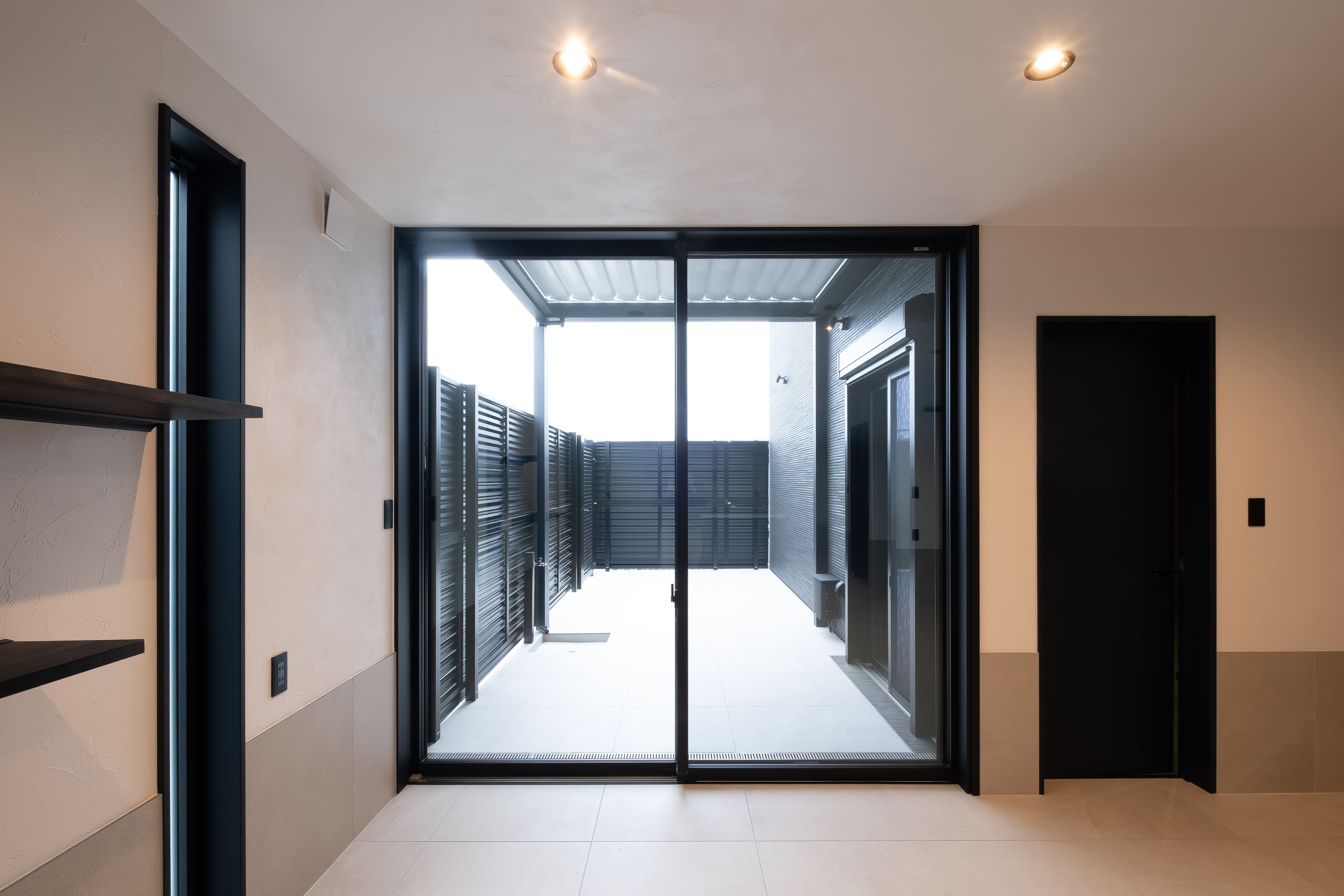 敷地面積88坪を活かし、周囲の視線を気にせず暮らせるよう、道路側には開口をほぼ設けず、完全プライバシーを確保した配置に。