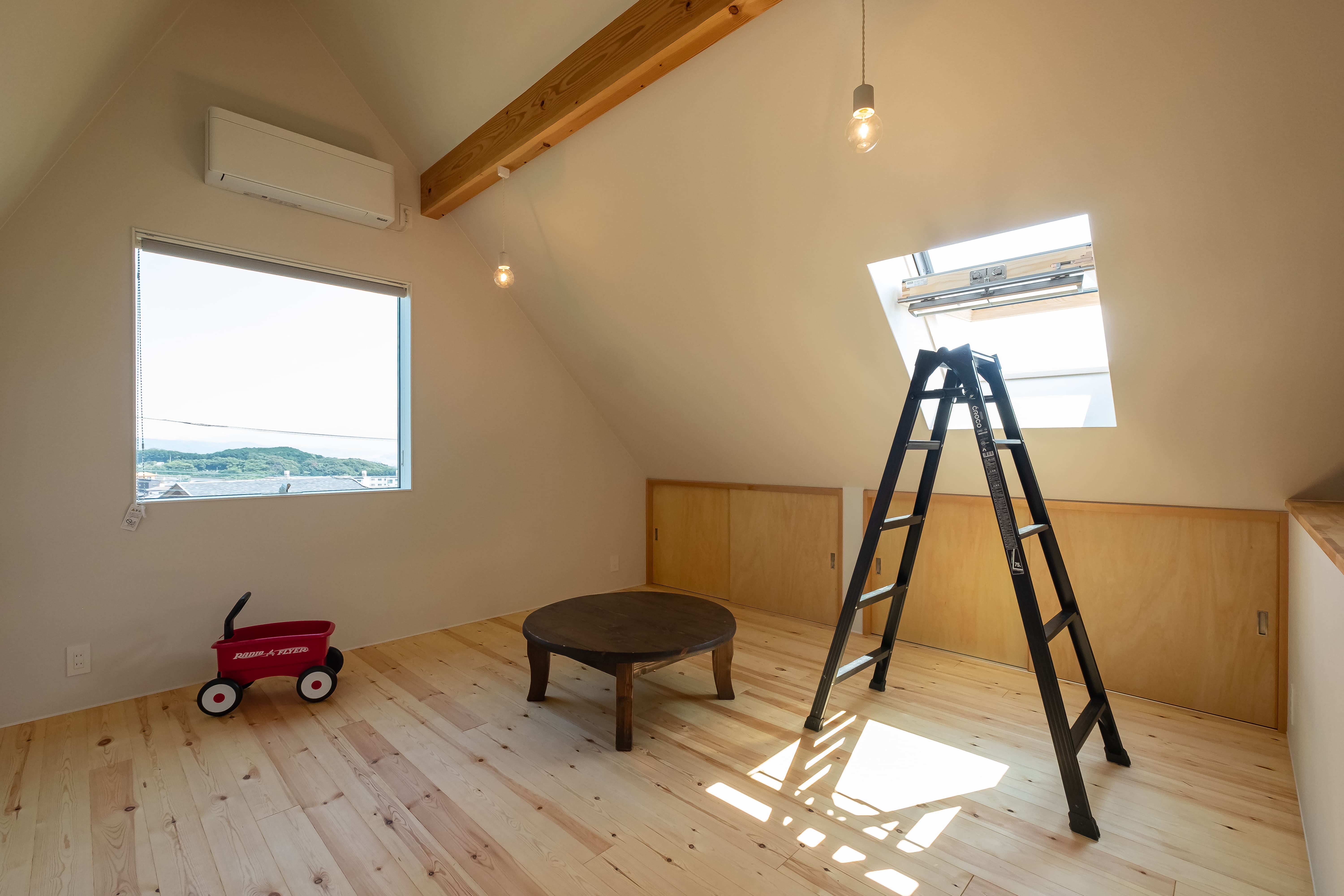 2階とのバランスや柱の位置にとらわれることなく窓を大きく取ったり、勾配天井にしたりと、お好みのデザインに仕上げることが可能です。