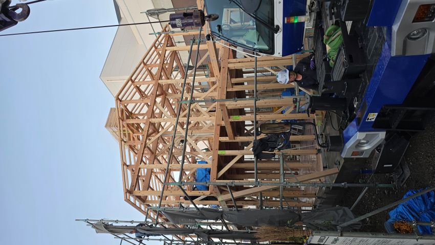 ✅大勢の大工さんたちが、一日でここまで組み上げていきます。