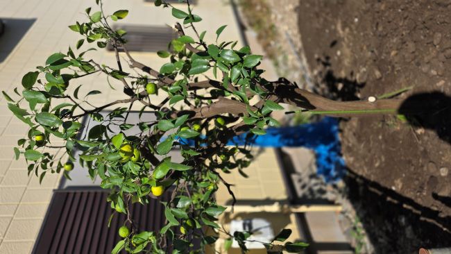 着工中M様邸にて、植栽を再利用したいとのことで実りに実ったカボスの🌳を移動しました!
