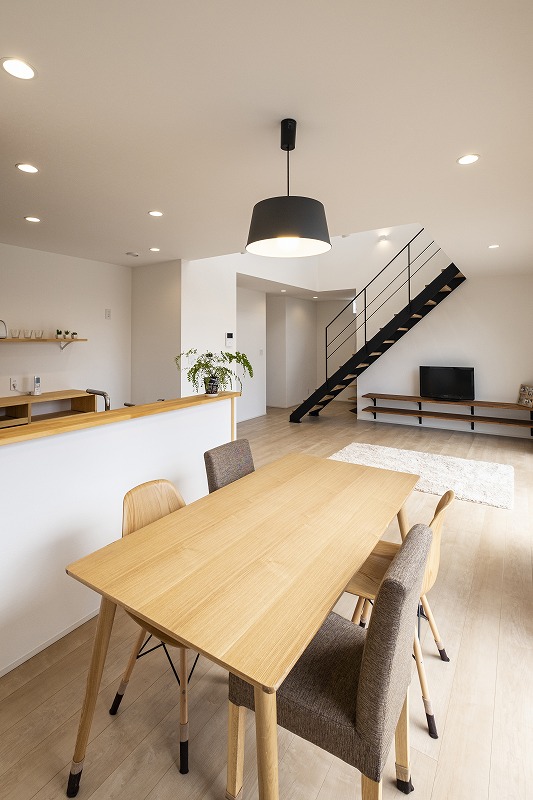 永建のお家は、高気密高断熱の高い性能のためスケルトン階段でも家中快適に過ごせます。